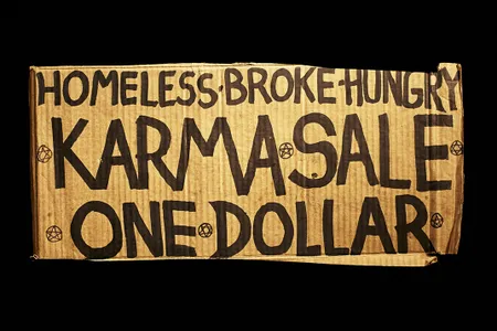 On the streets, a few words on a piece of cardboard can tell a life story