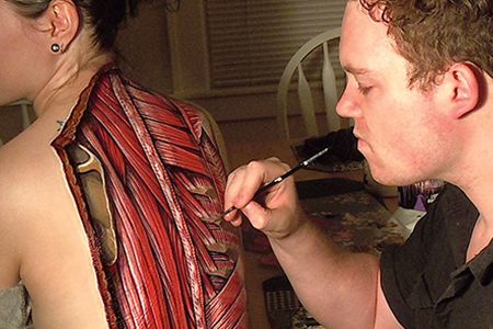 Artist Danny Quirk’s paintings on the skin of willing friends show in textbook-like detail the muscle, bone and tissue that lie underneath