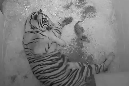 Adorable New Tiger Cub Born at the Zoo Yips at Its Mom on Video