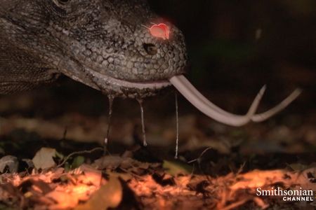 A Komodo dragon’s strongest sensory organ is its deeply forked tongue. It acts as a meal detector that samples the air for dead or dying animals