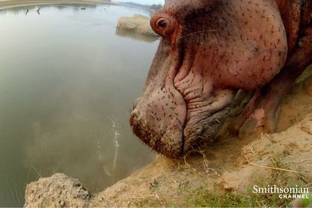A 15-foot male hippo carefully negotiates his enormous body down a sheer cliff. It’s the shortest and most direct route to the water