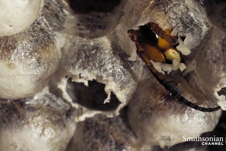 After two weeks of encasement, it’s time for the larvae, now adult hornets, to leave their silk cocoons. Get an intimate look at the moment one hatches