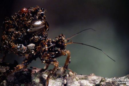 The assassin bug is one of the most cunning predators in the micro world, gluing the exoskeletons of its prey to its back as camouflage