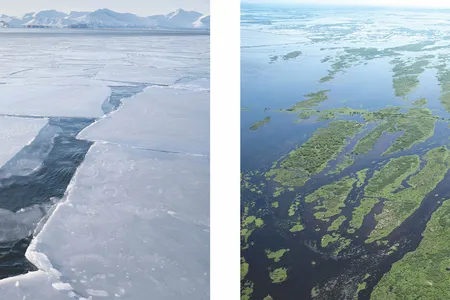 Paired Images of Melting Glaciers and Flooding Wetlands Tell the Story of Global Climate Change