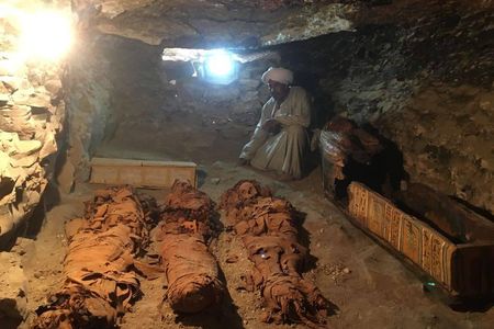 The tomb of Amenemhat and his wife Amenhotep includes a statue of the couple, mummies, statues and funerary masks