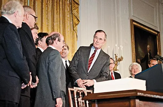 Getting all this to work in the real world required a leap of faith. The opportunity came with the 1988 election of George H.W. Bush. EDF president Fred Krupp phoned Bush's new White House counsel—Boyden Gray—and suggested that the best way for Bush to make good on his pledge to become the "environmental president" was to fix the acid rain problem, and the best way to do that was by using the new tool of emissions trading. Gray liked the marketplace approach, and even before the Reagan administration expired, he put EDF staffers to work drafting legislation to make it happen. The immediate aim was to break the impasse over acid rain. But global warming had also registered as front-page news for the first time that sweltering summer of 1988; according to Krupp, EDF and the Bush White House both felt from the start that emissions trading would ultimately be the best way to address this much larger challenge.