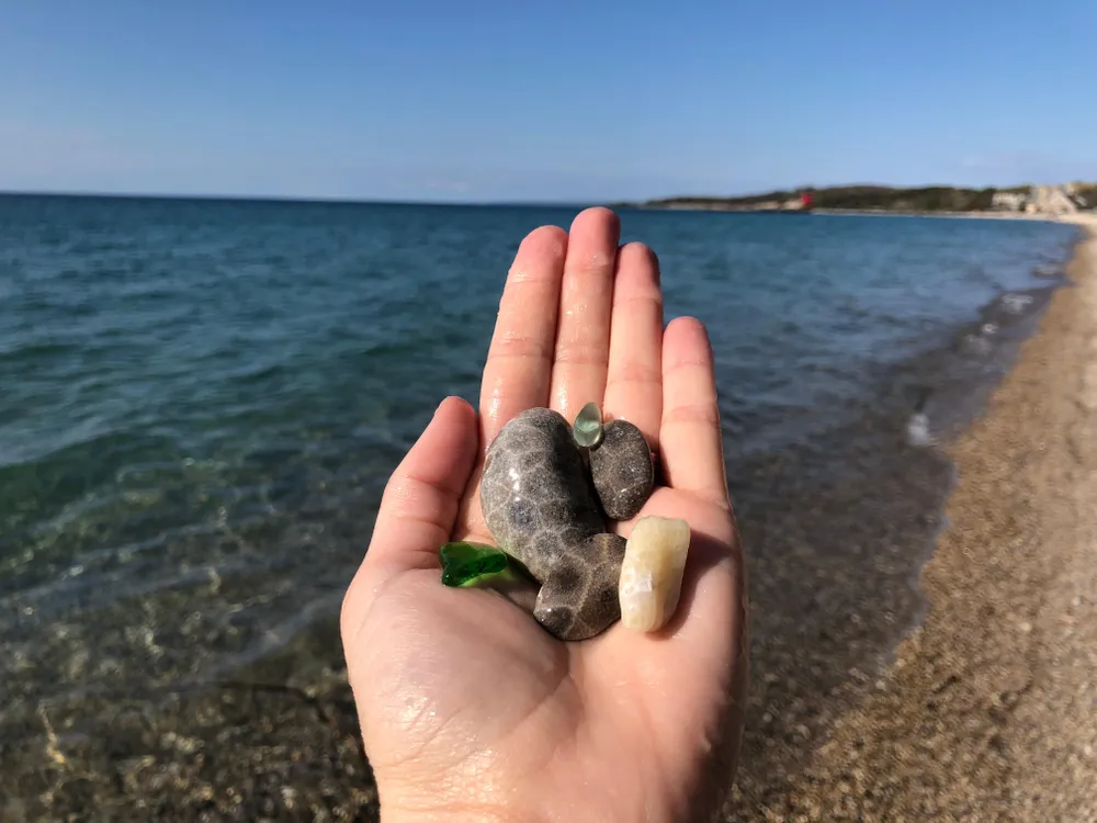 Charlevoix’s walkable downtown is filled with boutique shops like Harwood Gold, a fifth-generation maple syrup farm selling maple sauces and spreads, not to mention espressos, lattes and fresh-from-the-oven hand pies. (If the hand pies leave you hungry for more, check out the World’s Largest Cherry Pie, a quirky roadside attraction out past the Charlevoix Municipal Airport paying tribute to the 17,420-pound, then-world-record-holding cherry pie the town cooked up in 1976.) For original gifts, like jewelry made with Petoskey stones (fossilized coral that’s been churned into pebbles with hexagon-shaped cell patterns by the Great Lakes), a stop at The Lake House is a must. Rather hunt for your own Petoskey stones along Charlevoix’s waterbanks? Head to Michigan Beach.
