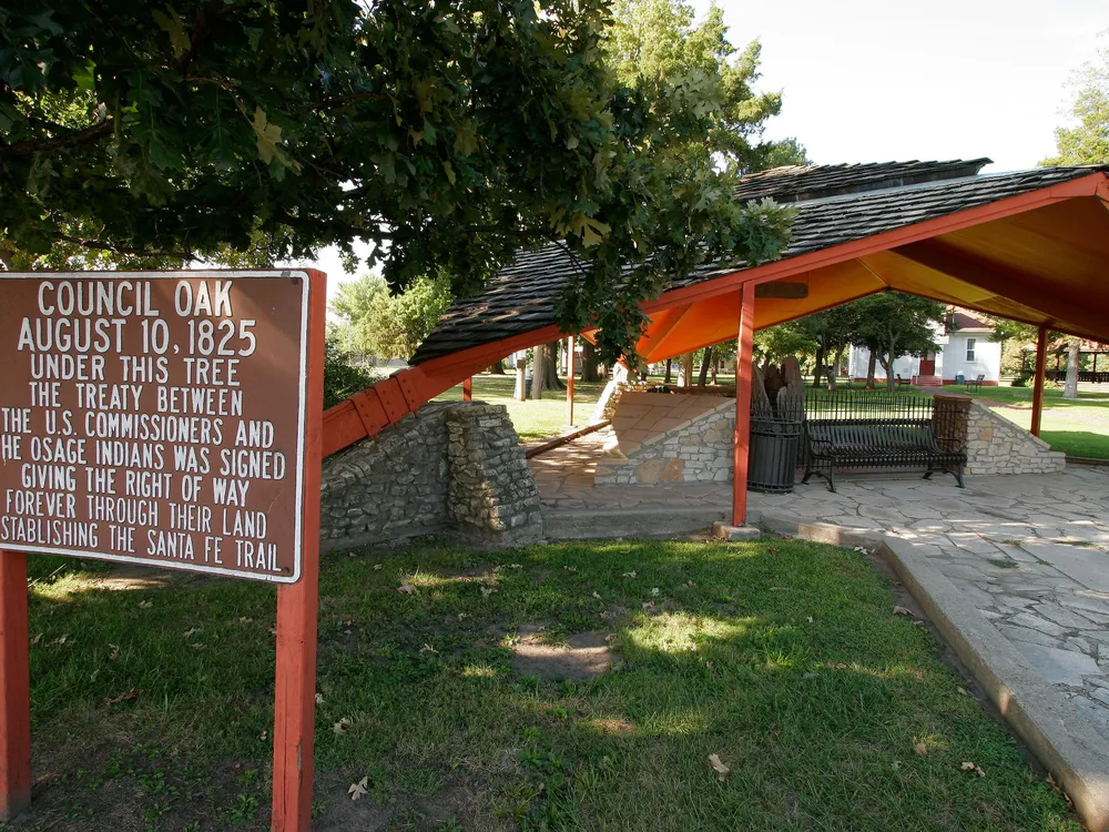 Council Grove and surrounding Morris County feature more than two-dozen historic sites, many of which are associated with the Santa Fe Trail. Council Oak, for instance, is the site where, in 1825, Osage tribe leaders granted Euro-American travelers right of way across Osage lands, ensuring their safety along the historic thoroughfare. The aptly named Last Chance Store was the last place to purchase goods en route to Santa Fe, and visitors can see actual trail ruts created by Santa Fe travelers about five miles west of town.