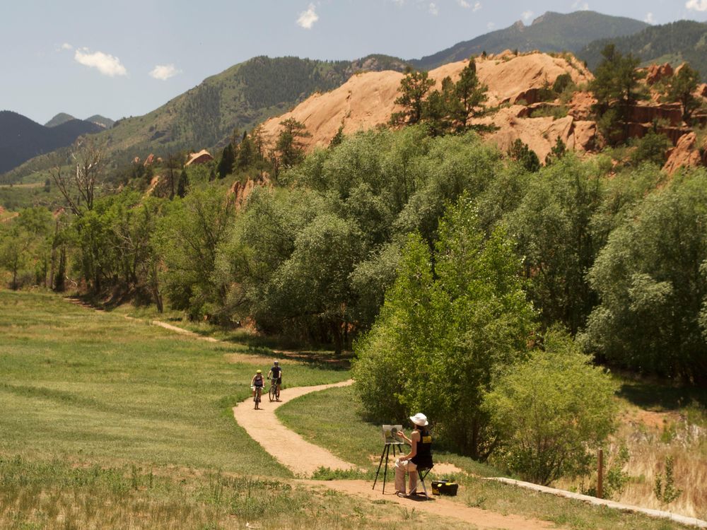 Hiking is a prominent area activity, with nearly a dozen easy-to-moderate marked trails in nearby Red Rock Canyon Open Space. Hardcore trekkers prefer the steep Manitou Incline, which climbs 2,011-feet (and 2,768 steps that were once railway ties for a funicular) in less than a mile up Rocky Mountain, resulting in spectacular panoramic views.