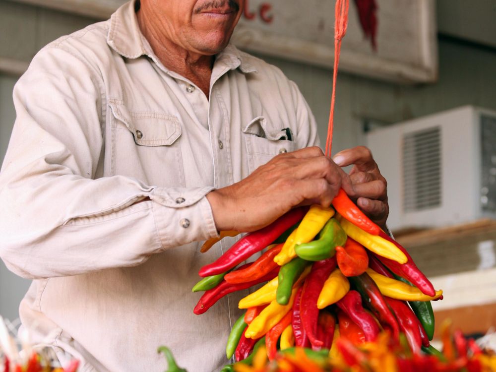 The scent of roasting chiles permeates the air in late summer and early fall along Hall Street, Hatch’s main thoroughfare, where mom-and-pop shops sell chile peppers in all forms. Ristras—decorative dried chile pods that are both edible and a good luck symbol—hang on the patios and in doorways of places like Chile Fanatic and Hatch Chile Sales, beckoning visitors to shop for chile powder, salsas and ristras of their own.