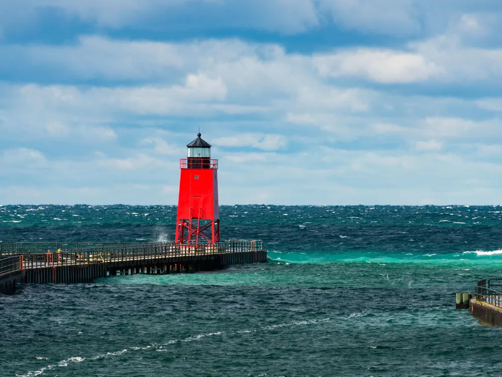 It’s little wonder that this small resort town in north Michigan (aka “Up North”) goes by the name, “Charlevoix, the Beautiful.” The scenic town sits right on the banks of Round Lake and the Pine River, a natural harbor and channel that together connect the turquoise blue waters of Lake Charlevoix with Lake Michigan. The bright red Charlevoix South Pier Light Station marks the spot.