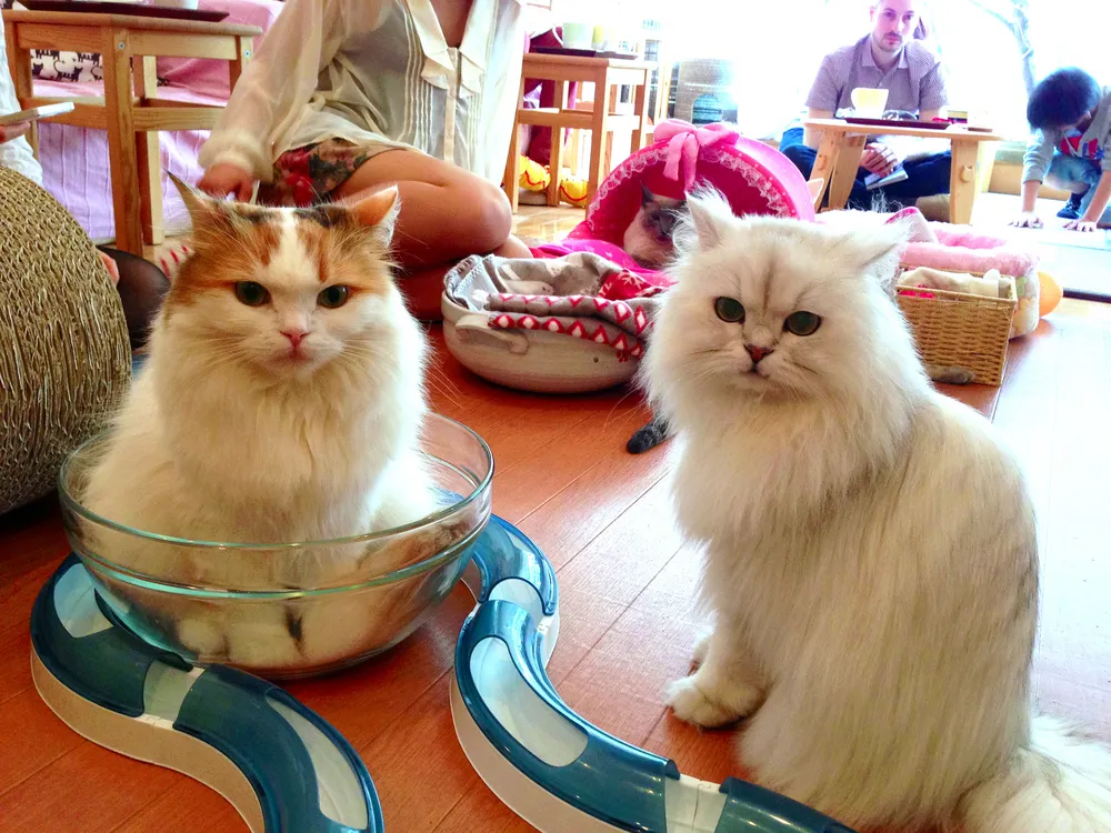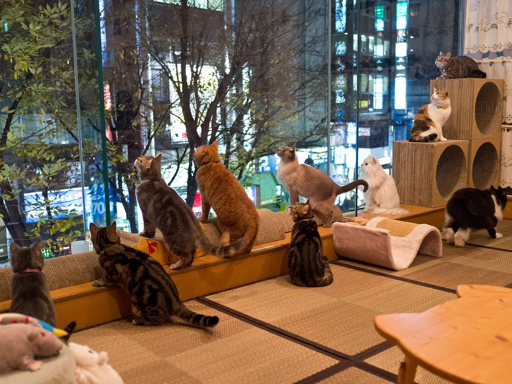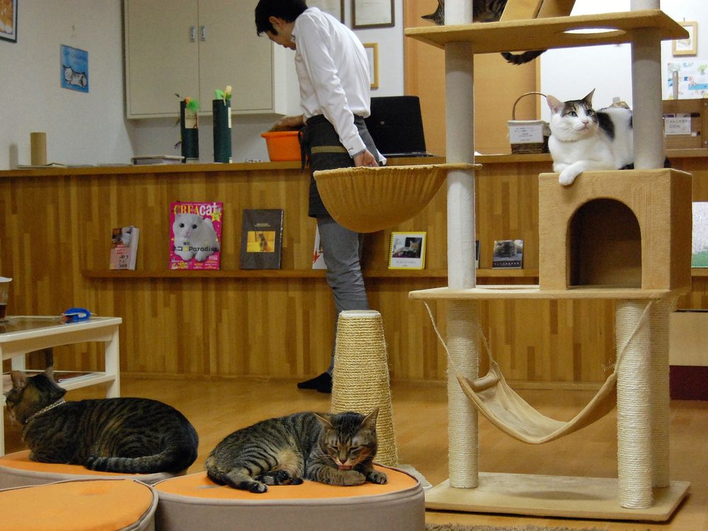 "It's definitely a stop for tourists. The one I visited in Shinjuku was mainly full of foreigners," says Sharla Hinskens, a Canadian student living in Japan. "But when I visited the smaller shop outside of the big city area, I was surprised at the number of local Japanese business men that were there. I talked to one of them, and he said cat cafés are a great place to relax and forgot about work, so he comes at least once a week."